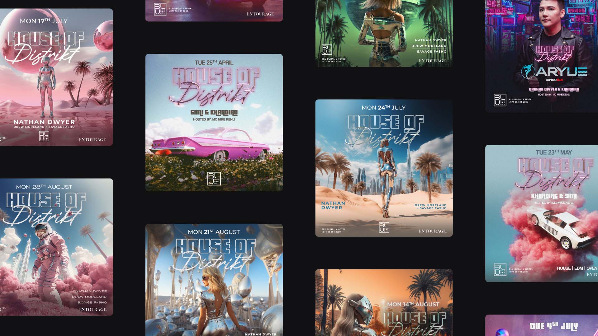 For BLU Dubai, a high-end nightclub in Dubai, I developed a series of event visuals between 2022 and 2023. The focus was on creating bold, high-impact promotional assets that matched the energy and scale of the venue.